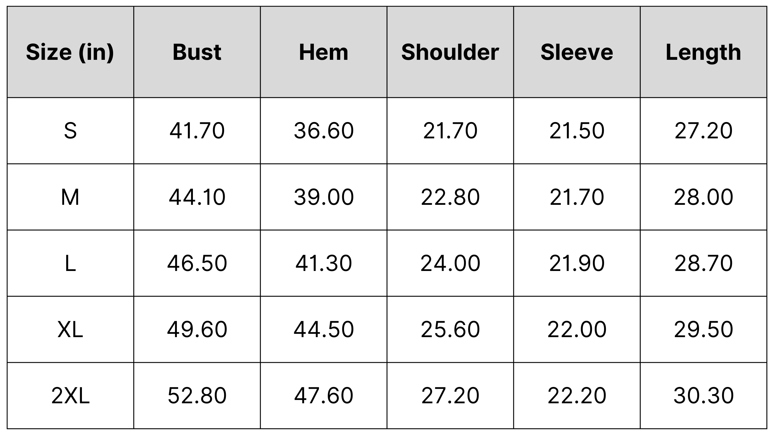 Size Chart: