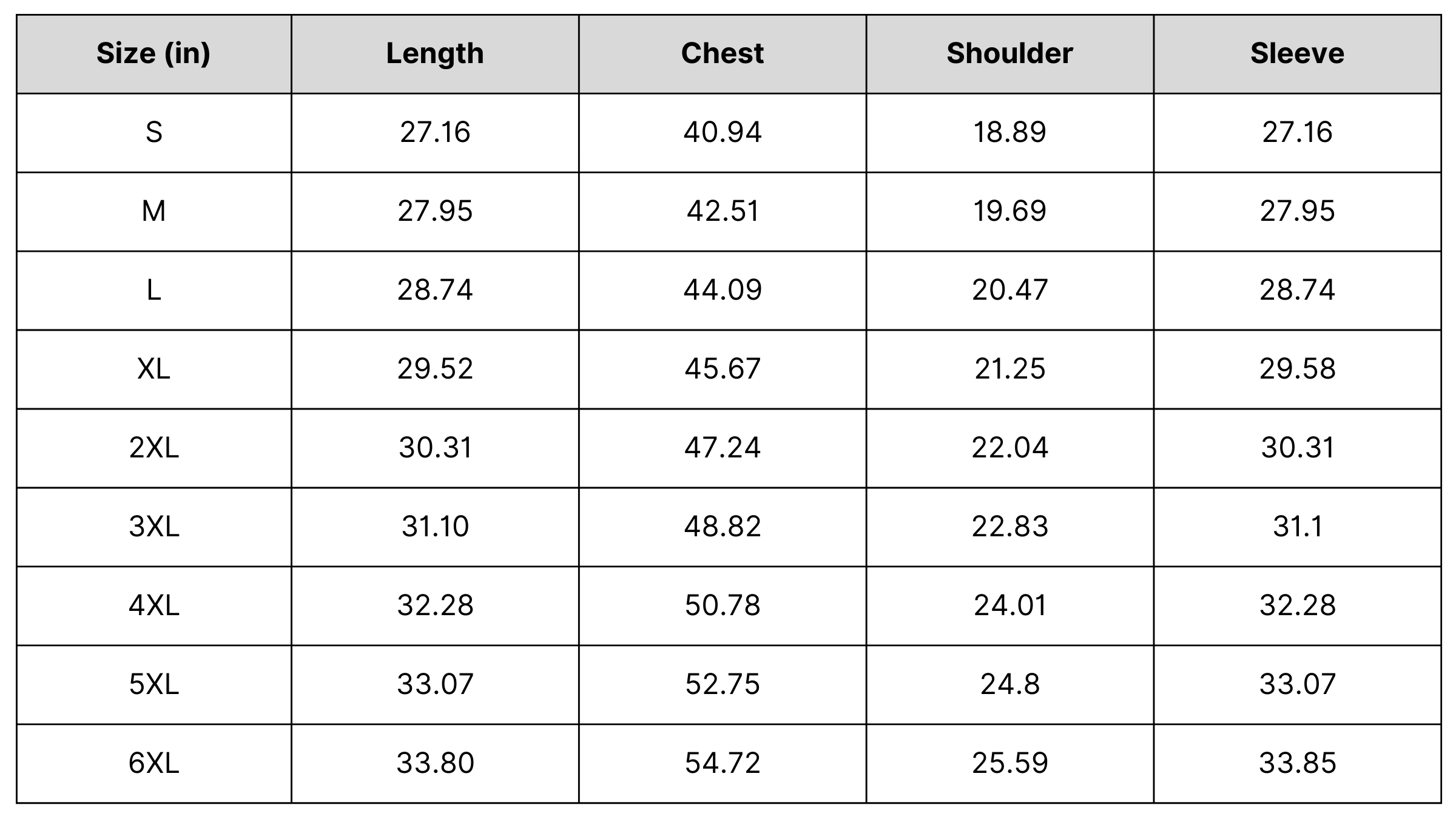 Size Chart: