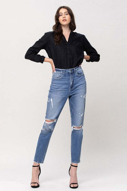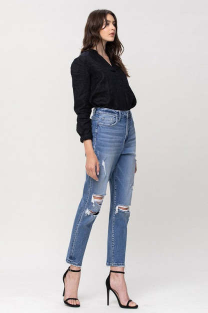 Super High Rise Stretch Mom Jeans by Flying Monkey.
