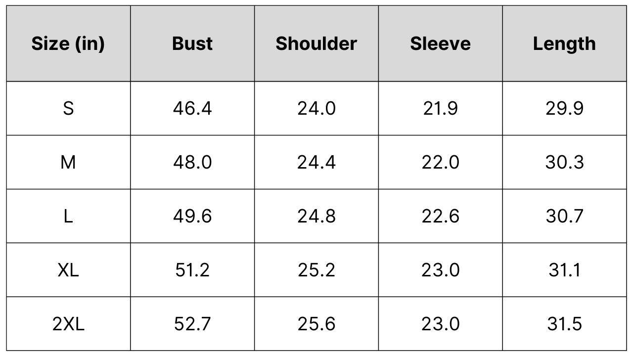Size Chart: