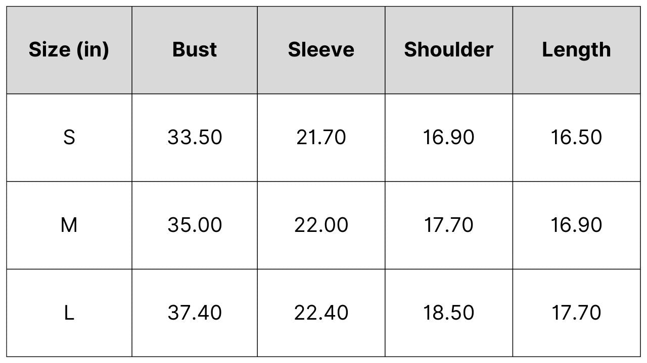 Size Chart: