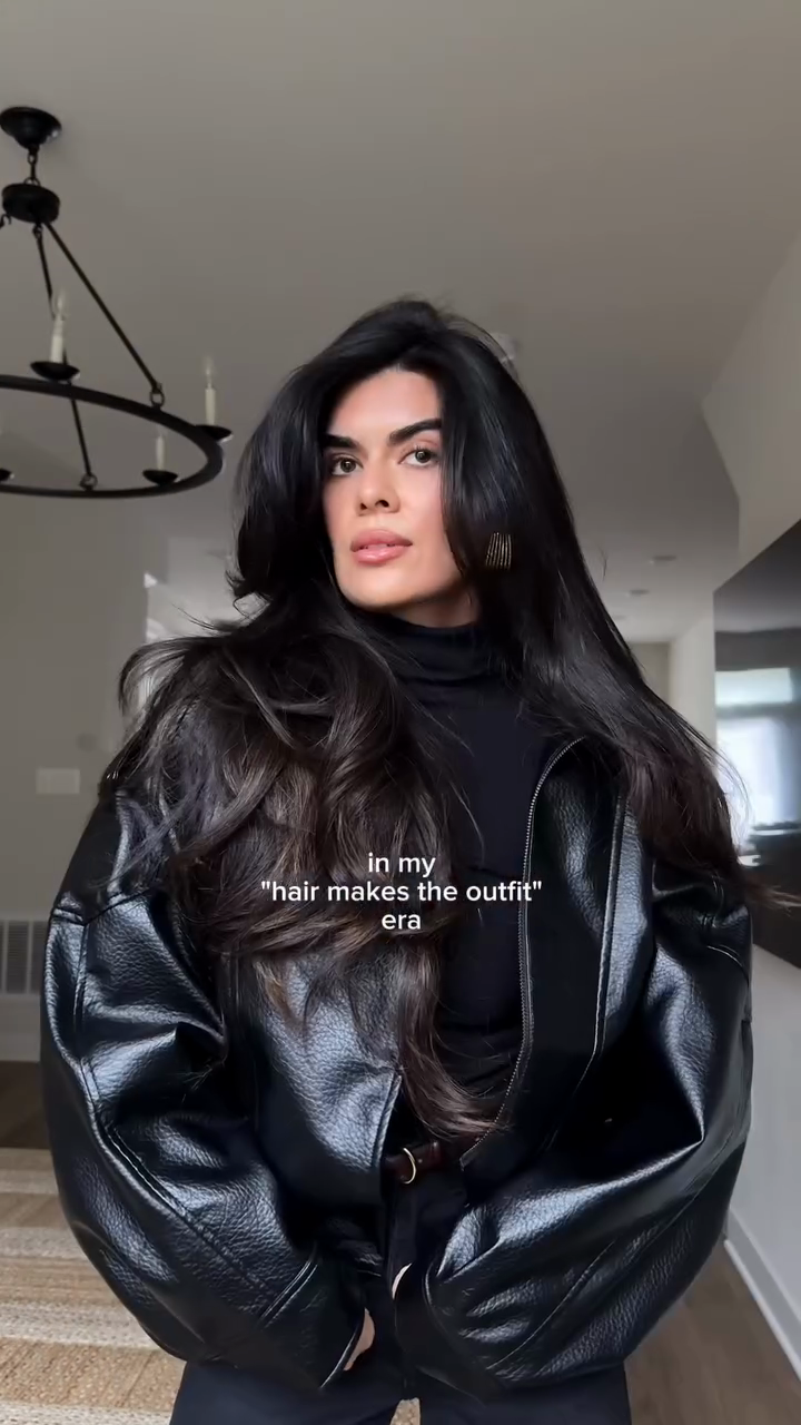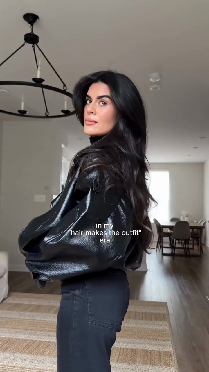 Black oversized leather jacket