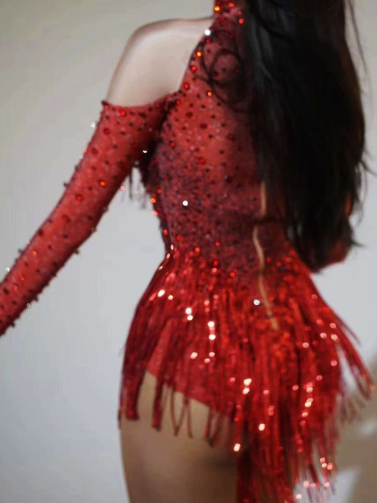 Indulge in luxury and glamour with our Lakendra Long Sleeve Crystal Fringe Bodysuit! This stunning piece features long sleeves and a crystal fringe design, perfect for adding a touch of sparkle to any outfit. Experience the ultimate in style and sophistication with this must-have bodysuit.
