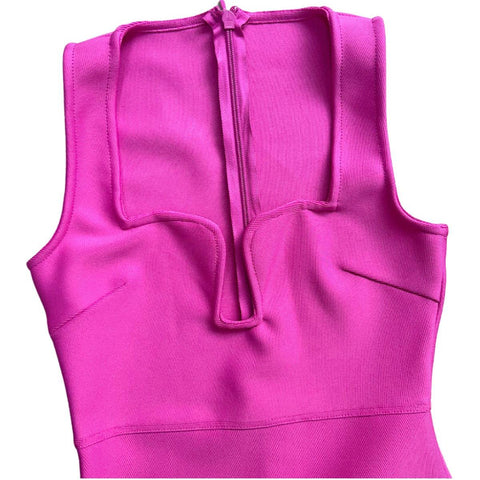 The Sadira Bandage Maxi Dress In Hot Pink oozes femininity and sophistication with its premium bandage fabric and maxi length. Perfect for any formal occasion, this eye-catching hot pink number adds a bold pop of color to any wardrobe.